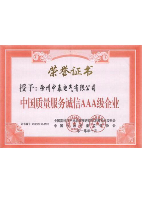 中国质量服务诚信AAA级企业